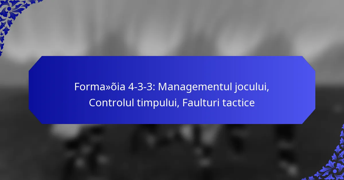 Formația 4-3-3 este o configurație tactică în fotbal care echilibrează puterea de atac cu soliditatea defensivă, având patru fundași, trei mijlocași și trei atacanți. Managementul eficient al jocului în cadrul acestei formații pune accent pe controlul meciului prin păstrarea mingii, faulturi tactice și înlocuiri strategice, permițând echipelor să dicteze ritmul și să obțină un avantaj asupra adversarilor.