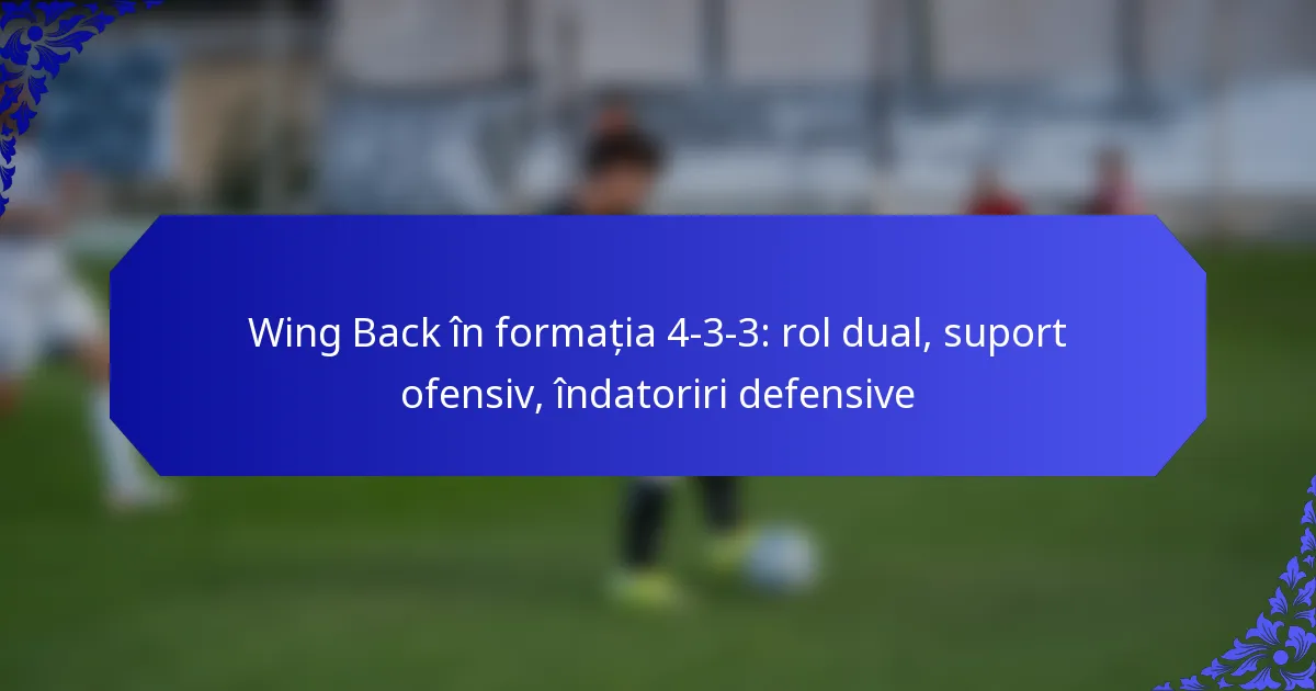 În formația 4-3-3, fundașii laterali sunt jucători esențiali care îmbină un rol dublu, combinând sprijinul în atac cu îndatoririle defensive. Capacitatea lor de a oferi lățime și de a efectua alergări suprapuse îmbunătățește dinamica ofensivei unei echipe, în timp ce angajamentul lor de a se întoarce rapid asigură o acoperire defensivă solidă. Această balanță este vitală pentru menținerea unei strategii de echipă coerente și eficiente.